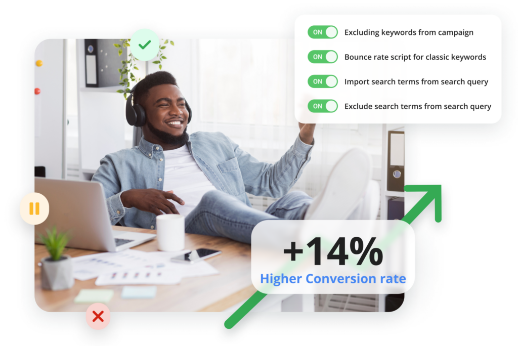 Náš pokročilý systém automaticky identifikuje a pozastaví nedostatočne výkonné kľúčové slová a vyhľadávacie výrazy, čím vám šetrí čas a peniaze.