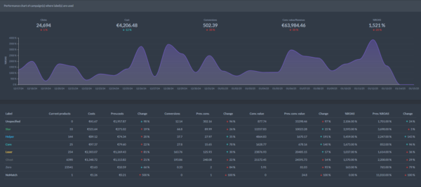 Tento pokročilý systém štítkovania vám umožní lepšie prispôsobiť a vylepšiť kampane. Pomôže vám zvýšiť predaje najlepších produktov, zlepšiť výkon menej úspešných a robiť rozhodnutia