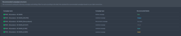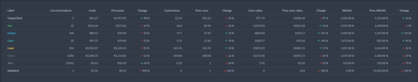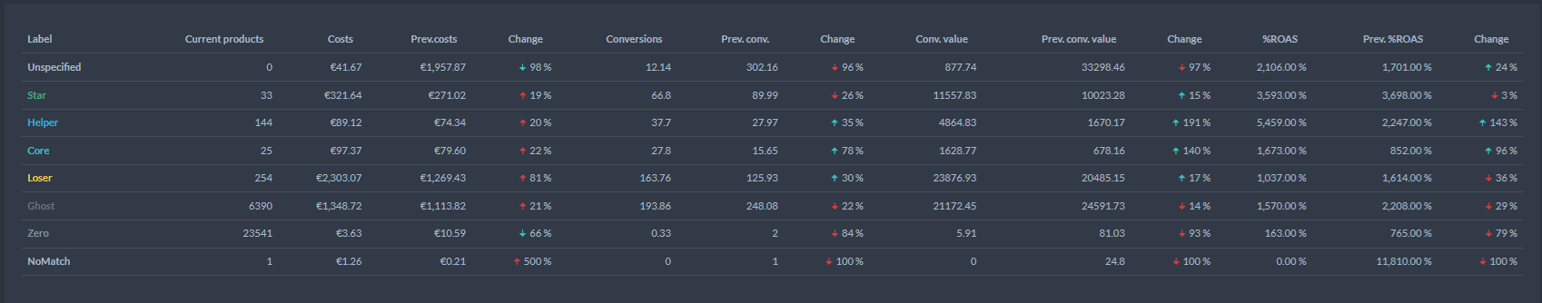 Dolaďte si štítky a zistite, koľko produktov spadá do jednotlivých kategórií výkonnosti. Takto budú vyzerať vaše kampane!